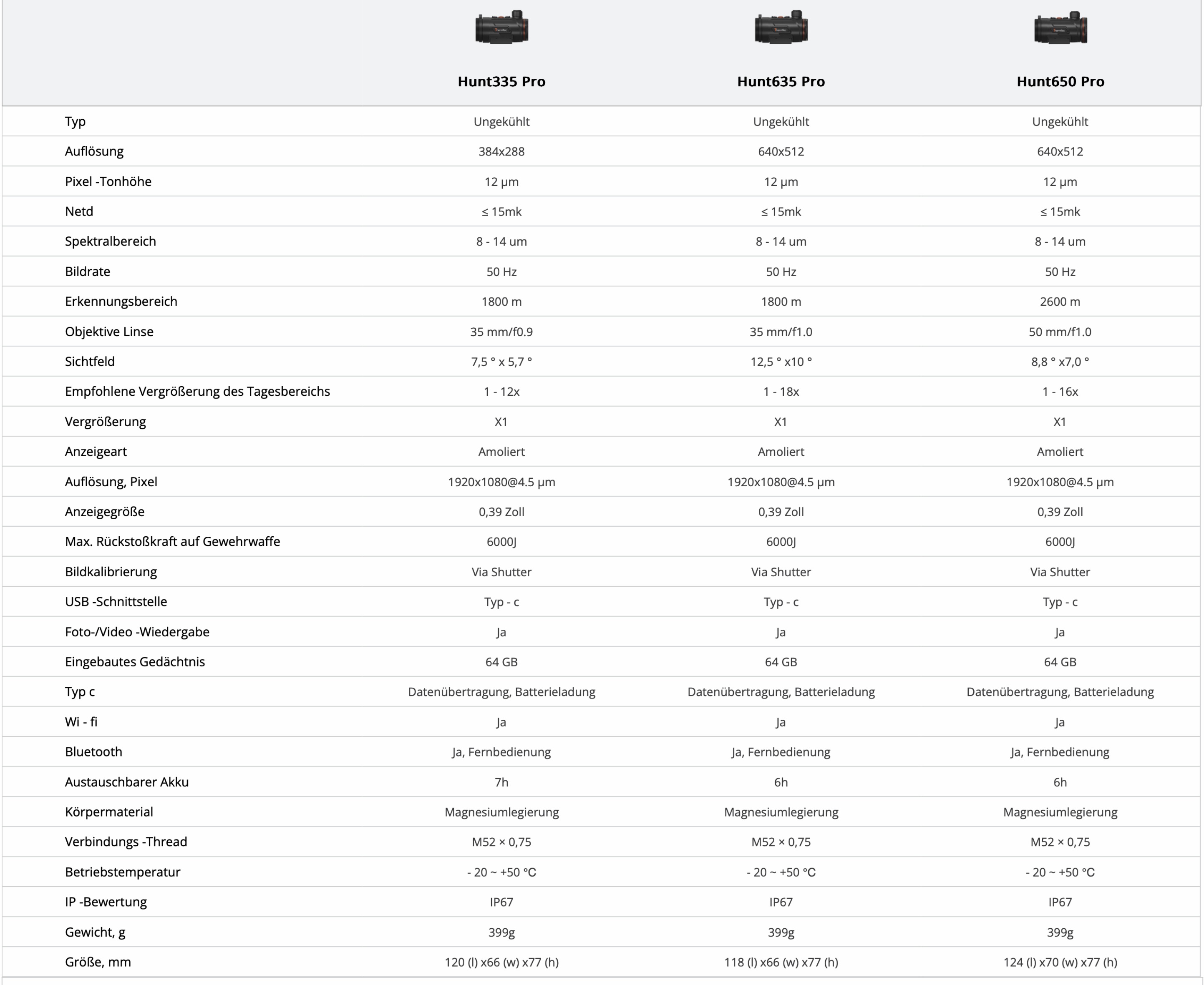 Produktinformationen "ThermTec Hunt 650 Pro Wärmebildvorsatzgerät 640 x 512 Pixel 12 µm Pixel Pitch ≤ 15 mK NETD M52x0.75"