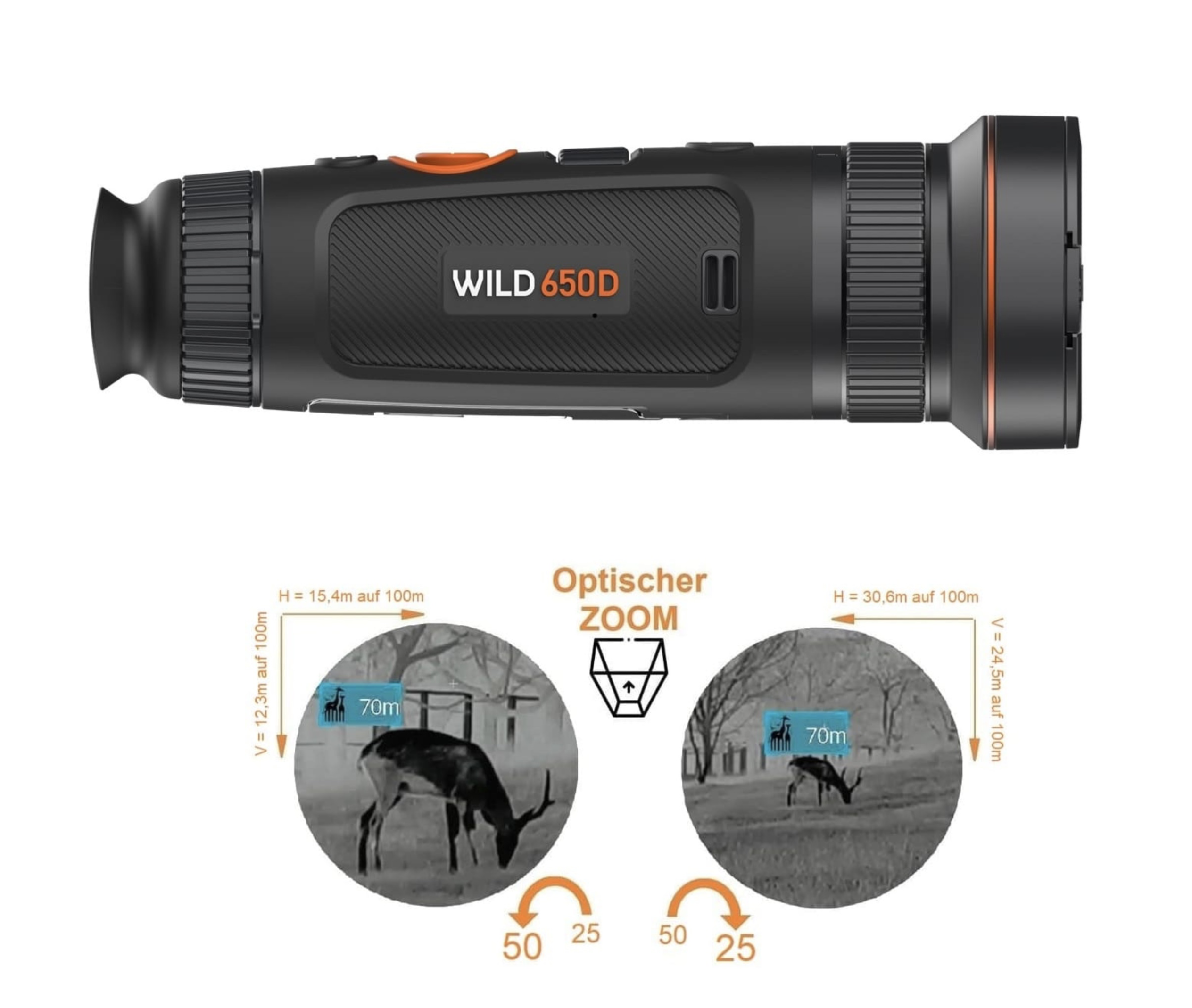 WILD 650D Wärmebildkamera von ThermTec - Dual Zoom - 25mm/50mm Linse, Fingerfokussierung, 640er Sensor und NETD von unter 18 mK